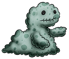 Spongelar is the meta-form of Spongely. Thanks to its newly-developed arms is able to move around a bit more easily, which came in handy for its ancestors in case they needed to haul themselves out of a drying-up tide pool back to the ocean. It absorbs mud and detritus from the substrate and squirts it out as a distraction when it is attacked. Its foam is non toxic, but can sting if it gets into your eyes.