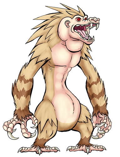 This Kreature is considered to be one of the most difficult to tame. Though primarily herbivorous, it lacks restraint and requires very little incentive to go completely berserk for hours at a time. It will lay waste to everything in its path and by the time its rampage ends it will leave the landscape around it unrecognizable. Its temper gets even worse in old age once the aches and pains start to set in. However, this isn't to say it's a mindless brute: compared to most other Kreatures, it is highly intelligent, capable of rudimentary tool use and problem solving.